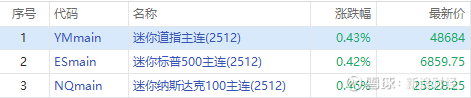 三大期指周一盘前小幅反弹,截至发稿,纳指期货 $NQmain 涨0.46%,标普500期货 $ESmain 涨0.42%,道指期货 $YMmain 涨0.43%。