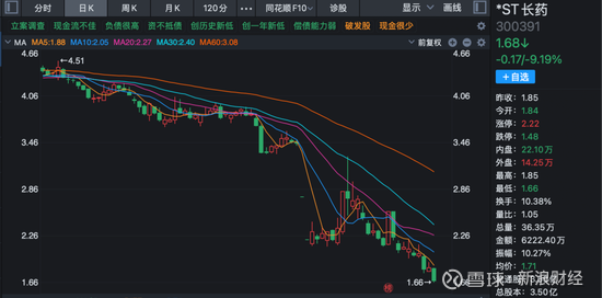 12月16日,绩差问题股领跌,23家主板ST股跌停。其中,*ST正平(603843)连续10个交易日跌停,*ST返利(600228)录得九连板跌停。*ST长药(300391)收盘下跌9.19%,最新收盘价1.68元/股,创下历史新低,最新A股市值已不到6亿元,公司今年前三季度净利润亏损2.1亿元。