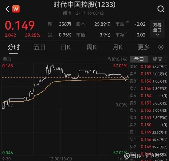 时代中国控股盘中一度飙升57%