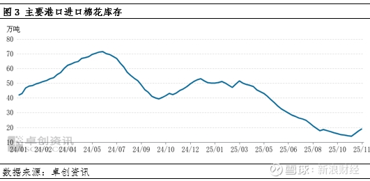 11月份以来,外棉到港数量增加,同时国内新季棉花集中上市,市场流通现货供给增加,但下游需求规模有限,同时,年底纺企所持棉花进口配额有限,港口实际出库量低于入库,净库存稳步回升。据卓创资讯统计,截至12月23日,国内主要进口港外棉库存34.7万吨,较11月初增加18.9万吨。