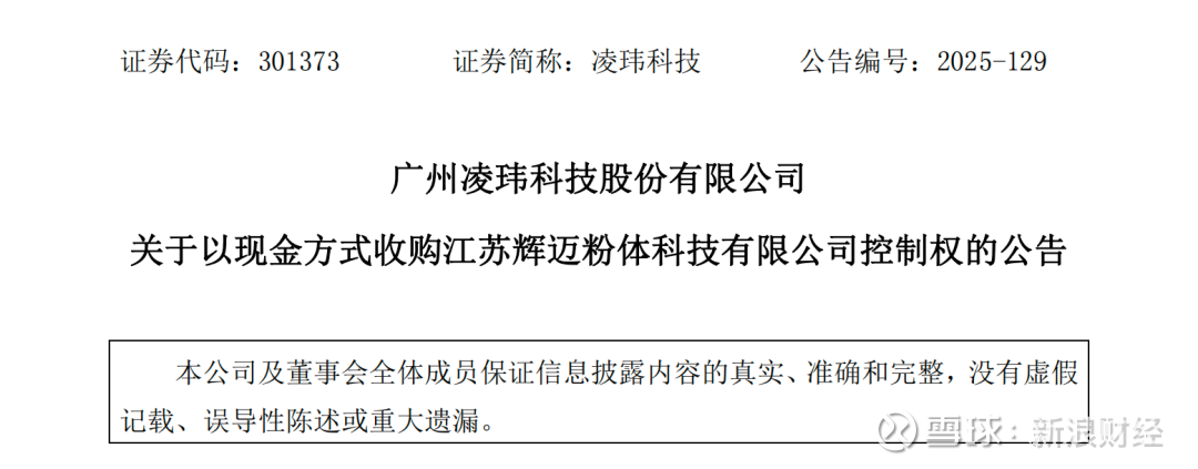慧正资讯,2025年12月23日,广州凌玮科技股份有限公司(证券代码:301373,简称“凌玮科技”)发布公告,宣布拟以现金方式分阶段收购江苏辉迈粉体科技有限公司(简称“江苏辉迈”)100%股权,以此获取标的公司控制权,这也是凌玮科技切入高端电子材料新赛道、构建长期竞争优势的关键战略布局。