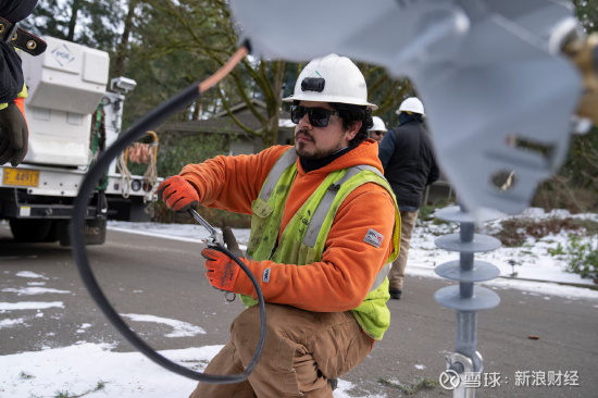 2024 年 1 月,美国俄勒冈州奥斯威戈湖市遭遇暴风雨后,波特兰通用电气的工作人员正在更换输电线路 电网的低利用率,在很大程度上是主动设计的结果。电力公司必须让电网具备应对极端灾害的冗余能力:哪怕遭遇致命热浪、寒潮,哪怕部分发电设施瘫痪 —— 比如得克萨斯州寒潮期间大批天然气发电厂停工,电网也能稳定供电。