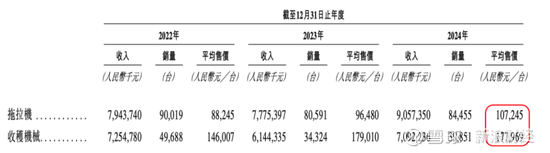 2024年拖拉机产品平均单价为10.7万/台,收获机械为17.8万/台。