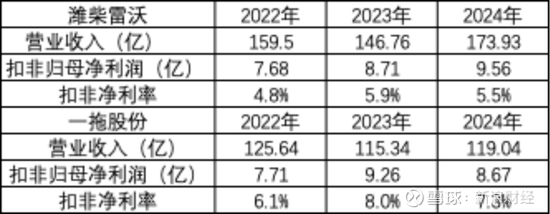 但整体上看,潍柴雷沃的净利率相对较低,2022年-2024年扣非净利率为4.8%、5.9%、5.5%。