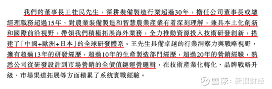 根据公司披露,高级管理团队平均行业从业年限超过15年,在农业装备研发和市场开拓方面积累了极为丰富的经验,其中董事长王桂民深耕装备制造行业超过30年,担任公司董事长或总经理职务超过15年。