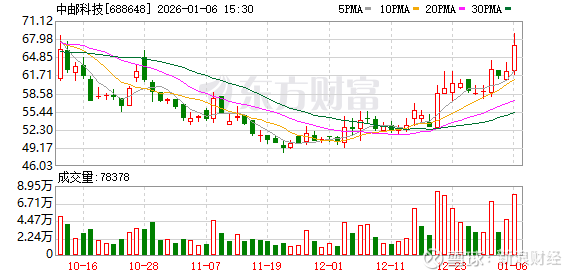 证券时报·数据宝统计显示,中邮科技今日收盘价为66.96元,上涨7.22%,日换手率为11.27%,成交额为5.14亿元,全天主力资金净流入4506.21万元,近5日该股累计上涨14.44%,近5日资金合计净流入1.05亿元。
