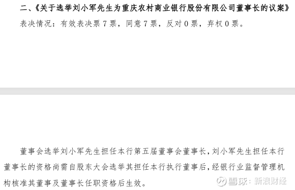 去年3月,刘小军加入重庆农商行,担任该行党委书记一职。随后4月16日,重庆农商行召开第五届董事会第五十五次会议,选举刘小军担任该行董事长,直至此次任职资格获批。