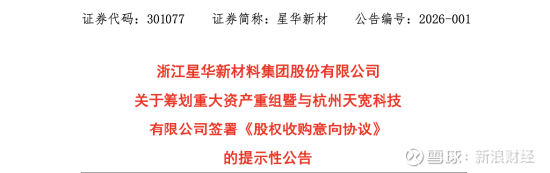 1月15日,浙江星华新材料集团股份有限公司(简称:星华新材)披露公告称,正在筹划以现金方式收购杭州天宽科技有限公司不低于51%的股权,整体估值暂定不超过6.6亿元,预计构成重大资产重组。交易完成后,这家长期深耕反光材料的制造企业,将把业务触角正式伸向杭州AI圈。