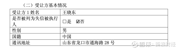 上述公告显示,王晓东出生于1976年,住所位于山东省龙口市通海路28号;龙口东启以自有资金从事投资活动,注册地位于山东省烟台市龙口市,由方杰出资4000万元、冯小伟出资4000万元、王晓东出资2000万元。