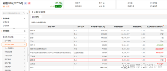 值得注意的是,2025年三季度末,葛卫东亲属葛贵莲便已经新进成为麦格米特第九大股东,截至2025年末,葛贵莲持有麦格米特606.76万股,持股市值达5.47亿元,足见葛卫东对该公司的高度关注。
