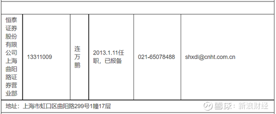 中证协历史信息显示,连万鹏早年任职于恒泰长财证券;2010年8月加入恒泰证券,曾先后在上海水电路营业部(现为上海海伦路营业部)和曲阳路营业部任职。而这位时任营业部负责人,同样已经离职注销。