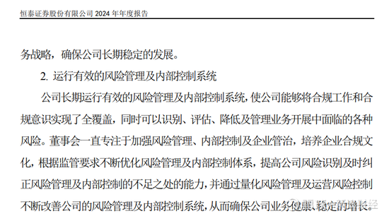 回顾恒泰证券2024年报,正文中多次出现合规底线,合规理念等字样,尤其是这一段表述——