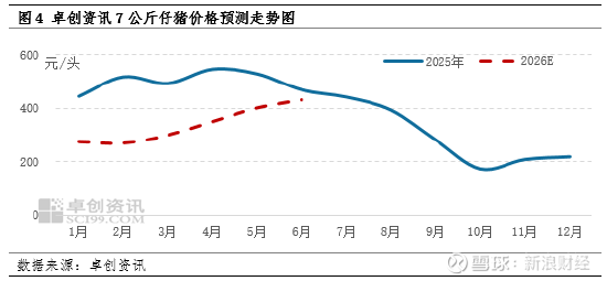 尽管如此,2026年上半年仔猪价格或呈现出季节性特征——上涨。按照前期能繁母猪运行态势,2026年生猪出栏量或先增加后减少,下半年猪价或震荡偏强运行。据卓创资讯调研,部分养殖端看好下半年生猪价格,将在上半年补栏仔猪,或支撑上半年仔猪价格上涨,月均价或在270-430元/头之间运行。
