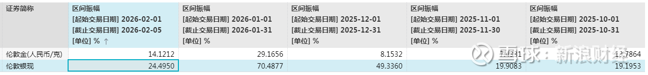 继续以伦敦金为例。根据wind统计,2月1日至今,短短四个交易日的区间振幅达到14.12%,低于今年1月的29.17%,但高于2025年10月至12月的13.79%、7.43%和8.15%。