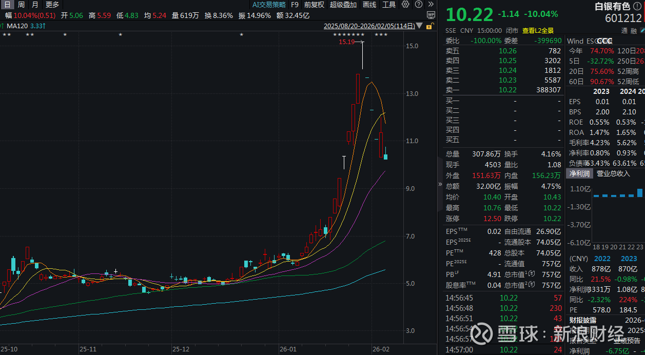 起因便是受到近期银价下跌影响,前期涨幅可观的兴业银锡1月30日、2月2日连续两天跌停,2月3日盘中公司股价继续跌停。
