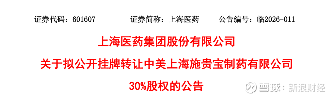 日前,上海医药发布公告,宣布拟通过产权交易所以公开挂牌方式转让其所持中美上海施贵宝制药有限公司(下称 “中美施贵宝”)30%股权,挂牌底价不低于10.23亿元。