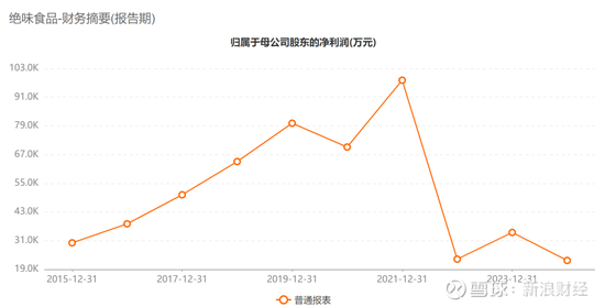 绝味食品业绩在2021年达到阶段性高点后,绝味食品的归母净利润于2022年骤降至2.35亿元/图源:中国基金报