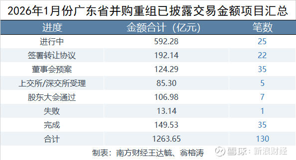 在已披露交易金额的并购重组事件中,本月广东上市公司并购重组金额合计为1263.65亿元,全国占比8.52%;笔数130笔,全国占比12.22%。