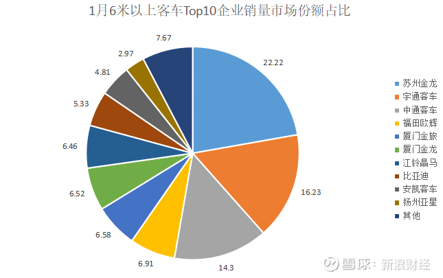 与上月相比,1月6米以上客车市场Top10企业排名发生了较大变化。