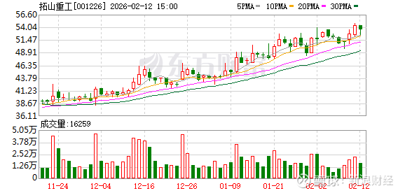 2025年前三季度,拓山重工实现营收4.94亿元,归母净利润1653万元。截至今日收盘,拓山重工股价下跌1.62%,报53.51元/股,总市值40亿元。