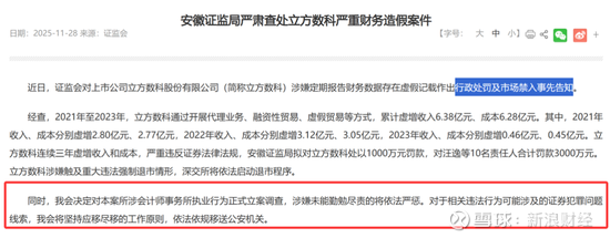 2025年11月28日证监会网站披露,安徽证监局严肃查处立方数科严重财务造假案件,在该份行政处罚事先告知书中,安徽证监局明确公开宣布对涉案中介机构立案调查。之后该份处罚决定书在资本市场引发震动,受此影响,不少上市公司临时改聘年审机构,涉案的中兴财光华会计师事务所近期也正在逐步丢失上市公司审计业务。