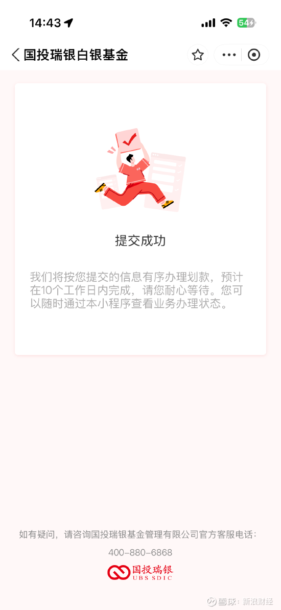 系统显示将按您提交的信息有序办理划款,预计在10个工作日内完成。可以随时通过本小程序查看业务办理状态。