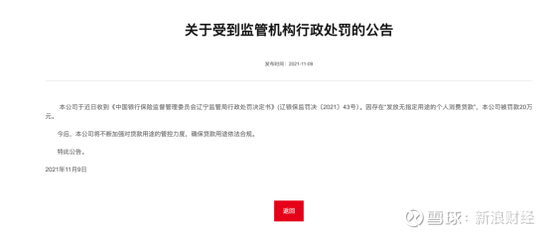 盛银消金方面,2021年11月9日,因存在发放无指定用途的个人消费贷款,被处罚款人民币20万元。