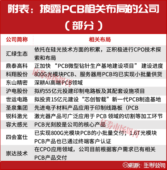 另外,其他公司也披露了在PCB领域的相关的布局,涉及产能扩张、PCB 产业链加码以及市场端拓展等(见附表)。