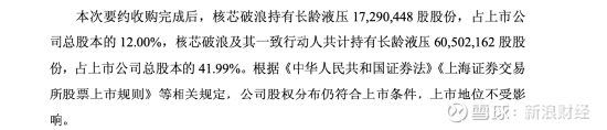 通过这笔协议转让,新资本第一次进入长龄液压的股权结构,原本高度集中的家族持股比例明显下降。但交易并未就此结束。与此同时,另一家名为核芯破浪的合伙企业又向市场发出部分要约收购,计划进一步从其他股东手中收购股份,以扩大持股比例。