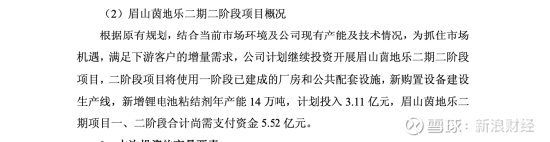 同日披露的公告显示,公司计划投资3.11亿元建设眉山茵地乐二期二阶段项目,新增锂电池粘结剂年产能14万吨。眉山项目整体规划年产20万吨粘结剂,分两阶段推进,其中一阶段6万吨产能已在2026年3月进入试生产阶段,预计5月达产。若全部建成,公司锂电池粘结剂设计产能将达到年产16万吨。