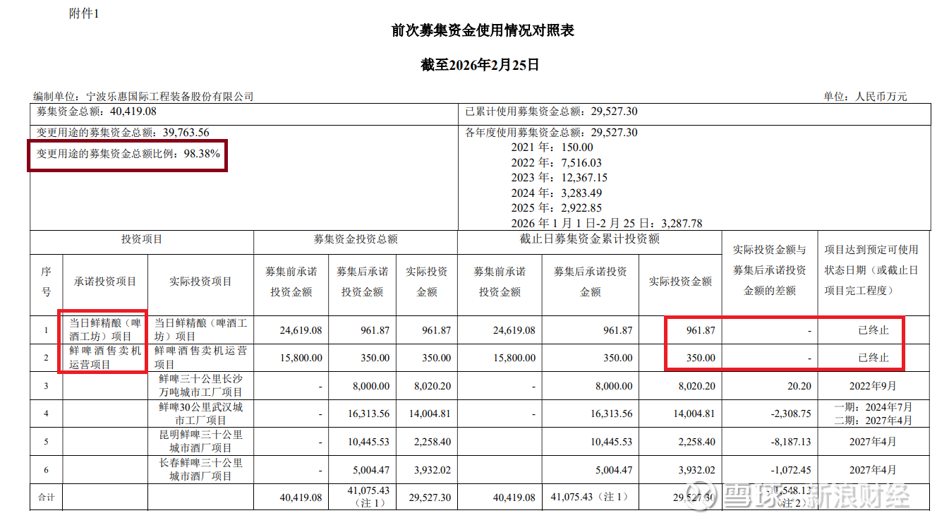 在前次定增募资到账5年的时间里,乐惠国际不仅终止了前次募投项目,新变更的募投项目又不断延期,完成的部分项目又累计为负,公司是否该重新审视该定增项目的合理性?更深层次或应考虑“鲜啤三十公里”是否是一个失败的战略。