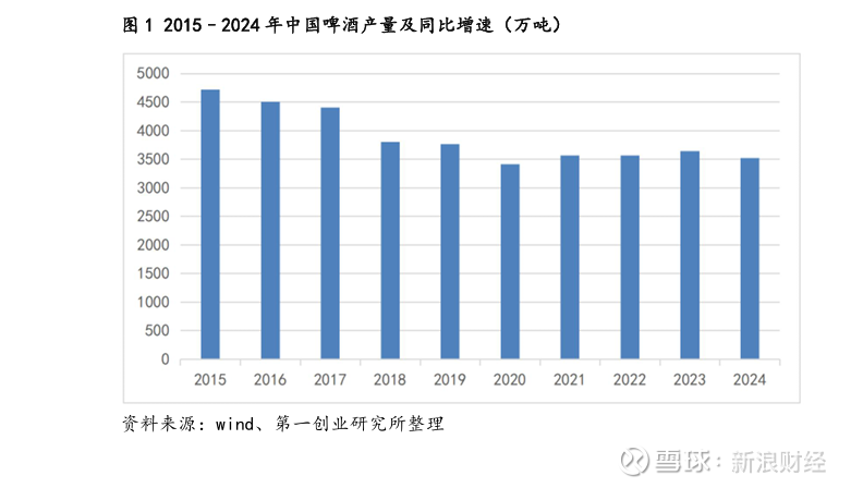 来源:第一创业研报 从鲜啤所处的行业来说,规模以上产量在2013年见顶后持续回落。第一创业研报指出,国家统计局口径下,2024年规上啤酒产量约3521万千升,同比略降0.6%,整体仍在2015年以来的轻微下行的区间徘徊,并没有出现新一轮放量。过去几年高端化确实显著抬升了吨价和终端零售均价,但在宏观环境偏弱、餐饮场景修复不及预期的约束下,这种结构拉动更多是在对冲量的疲弱,而不是驱动行业进入新一轮高景气周期。