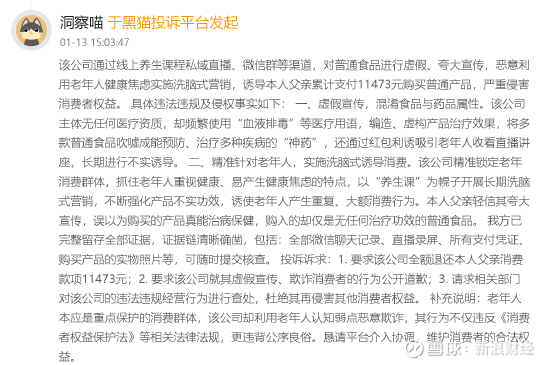 2025年,黑猫投诉平台有关“老年人直播购物上当受骗”的投诉达3000余件。