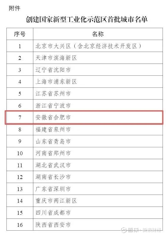 3月16日,工信部公布全国首批创建国家新型工业化示范区城市名单,确定首批16个创建国家新型工业化示范区城市,合肥市入选其中。
