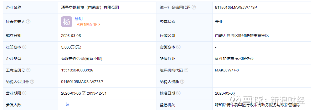 近日,通号空铁科技(内蒙古)有限公司成立,注册资本5000万元,经营范围包括智能无人飞行器制造、航空运营支持服务、人工智能应用软件开发等。企查查股权穿透显示,该公司由中国通号旗下通号低空智能科技有限公司、内蒙古交通投资(集团)有限责任公司共同持股。