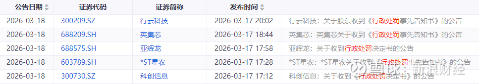 3月17日盘后,A股市场迎来监管重拳。英集芯(688209.SH)、亚辉龙(688575.SH)、*ST星农(603789.SH)、科创信息(300730.SZ)、行云科技(300209.SZ)5家公司相继发布收到行政处罚决定书或事先告知书。具体案由来看,涉及问题五花八门:有公司隐匿重整期间的股权协议,有公司借“脑机接口”概念炒作,还有公司直接在财务数据上“动手脚”。