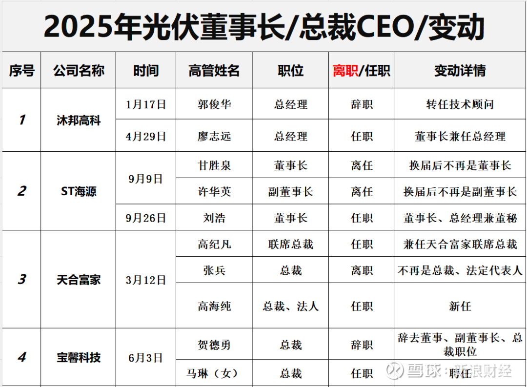更多光伏企业“一把手”和高管的洗牌在2025年一桩桩爆发。
