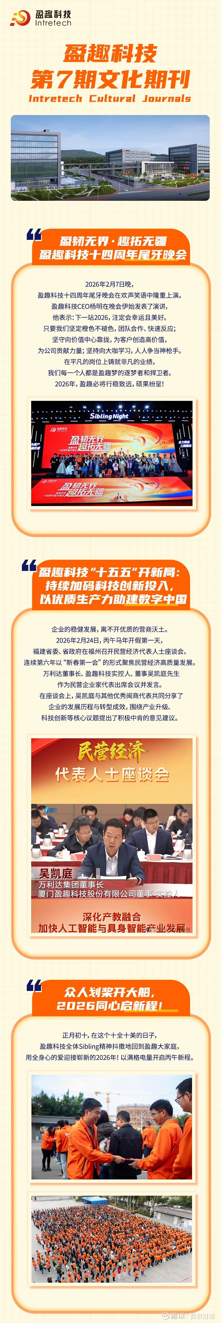 盈趣科技致力于通过开放创新生态培育新质生产力,以技术和智造的双重优势引领市场,不仅为客户与投资者创造高价值,更以科技赋能产业与社会进步。未来,盈趣科技将持续深化3POS企业文化,坚守爱心和艰苦奋斗,践行“成为中国工业互联网、民用物联网和星空互联网的领导者,成为中国走向世界的窗口”的愿景,打造乐趣生活!