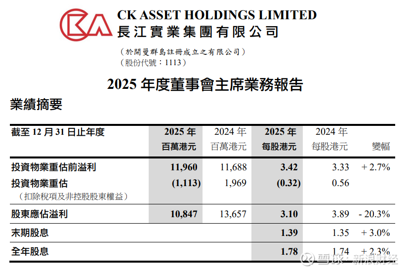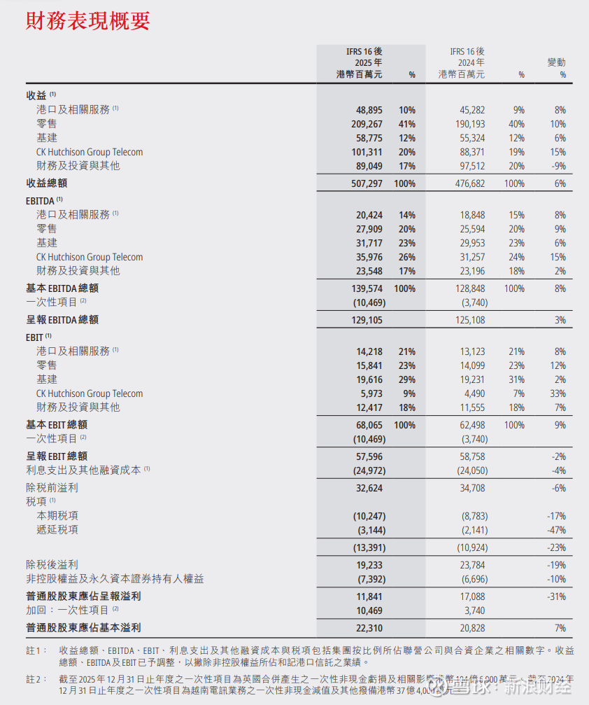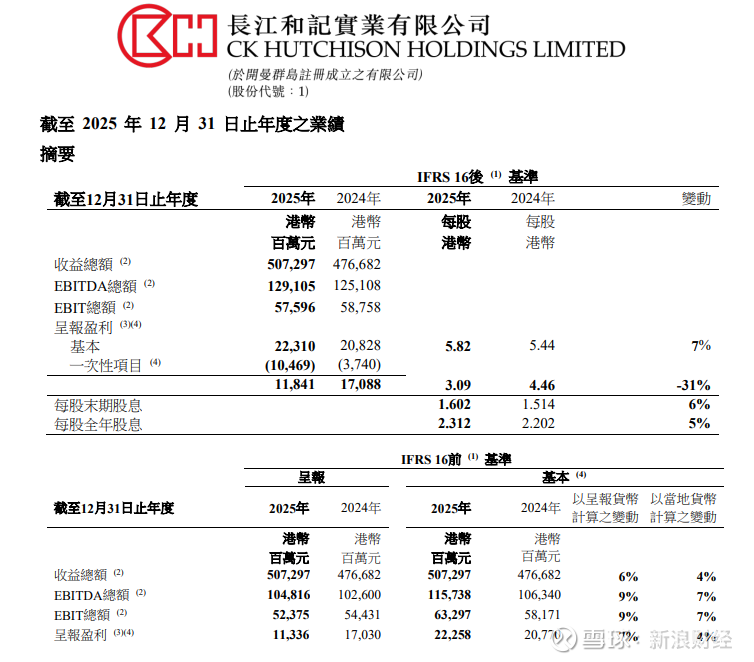 近日,长和系旗下多间上市公司陆续公布2025年全年业绩。