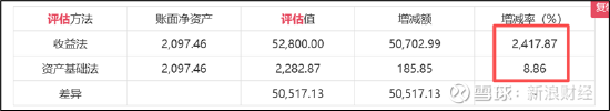 值得注意的是,此次溢价率高达24倍。即上海勤礼净资产账面价值为2097.46万元,而评估值则达到5.28亿元,增值率高达2417.87%。本次评估采用收益法得出的股东全部权益价值为5.28亿元,比资产基础法测算得出的股东全部权益价值2282.87万元高5.05亿元,高2,112.88%。