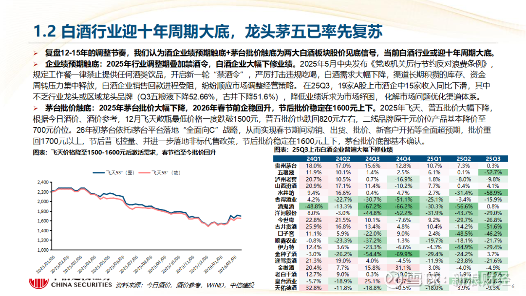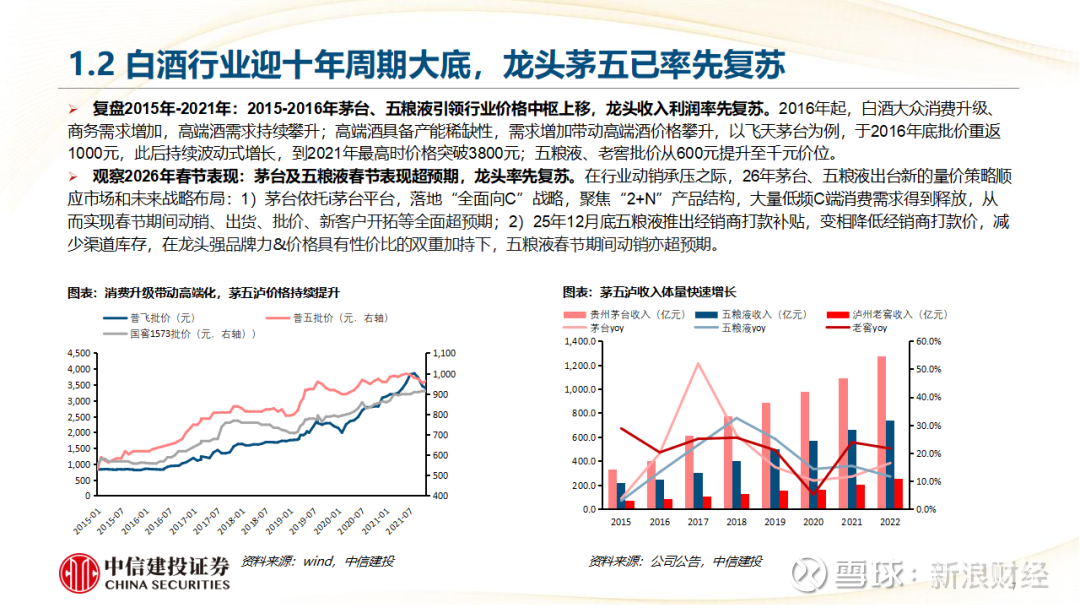 预测二:白酒行业迎十年周期大底,龙头茅五已率先复苏;