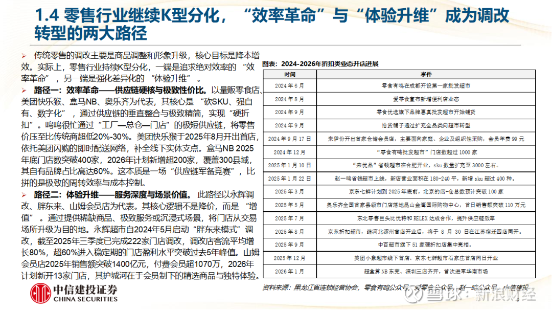 预测四:零售行业继续K型分化,“效率革命”与“体验升维”成为调改转型的两大路径;
