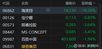 餐饮股跌幅居前,海底捞跌超10%。2025年,海底捞总收入达432.25亿元,同比增长1.1%,净利润同比下降14.0%至40.42亿元。利润下滑的核心症结在于翻台率的持续走低,2025年自营海底捞餐厅整体翻台率为3.9次/天。