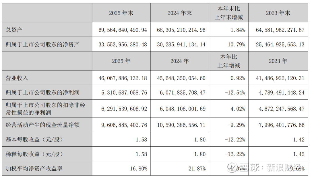 慧正资讯,2026年3月24日,卫星化学披露2025年度年度报告。公告显示,2025年,卫星化学总资产695.65亿元,同比增长1.84%;营业总收入460.68亿元,同比增长0.92%;归母净利润53.11亿元,同比下滑12.54%;扣非后归母净利润为62.92亿元,同比增长4.02%,每股收益为1.58元。此外,公司拟向全体股东每10股派发现金红利5.00元,预计分红总额16.78亿元,延续了稳健回报的分红传统。