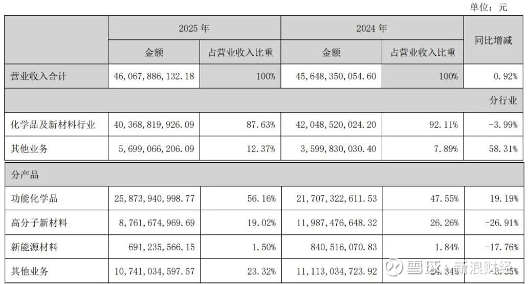 总体来看,虽然高分子新材料板块短期承压,但功能化学品的强劲增长和新能源材料的技术突破,为公司整体业绩提供了有力支撑。