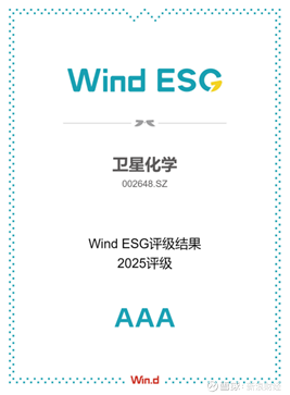 ESG领域同样取得突破性进展。2025年7月22日,卫星化学Wind ESG评级由A上调至AAA,这是Wind ESG评级体系的最高等级,首次登顶该评级体系。与此同时,公司MSCI ESG评级也从B提升至BBB,居A股化工行业上市公司前列。公司已建立起“董事会—战略与ESG委员会—ESG工作小组”三级管治架构,围绕国家“双碳”战略目标,构建了绿色发展“4R”模式,并率先推进氢能“制、储、输、用”全链条建设。