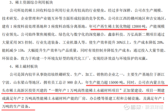 稀土资源综合利用板块主要是对稀土永磁材料生产过程中产生的边角废料,以及报废的废旧永磁材料进行回收再利用,生产高纯度稀土氧化物。
