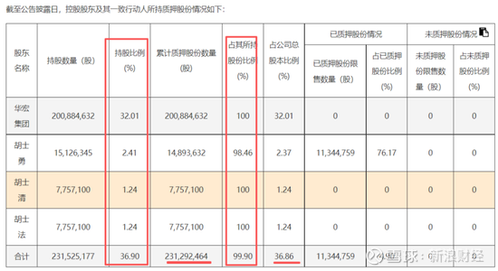 具体来看,华宏集团单体质押率高达100.0%,胡士勇质押率为98.5%,胡士清与胡士法各自的质押率也均为100.0%。可以说,实控人胡氏兄弟已经把手里的筹码全盘托出,极限押注。