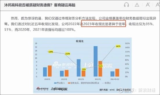 来源:新浪上市公司研究院《沐邦高科能否被质疑财务造假?客商疑云再起》