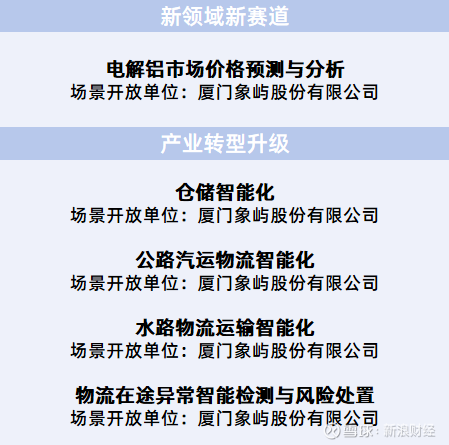去年以来,厦门深入贯彻落实国家关于加快场景培育和开放的决策部署,紧扣“3+1”城市发展总体框架和“4+4+6”现代化产业体系,按照“三位一体、全链贯通、标杆引领、生态赋能”工作思路,强化“政策+要素+机制”支撑,致力打响“厦门场景”品牌。会上,市发展和改革委员会发布了厦门第一批“场景机会清单”和“场景能力清单”,展现了厦门布局未来产业、推动城市智慧运行和创造高品质生活的明确导向。象屿股份共有5个场景入选,覆盖新领域新赛道、产业转型升级领域。